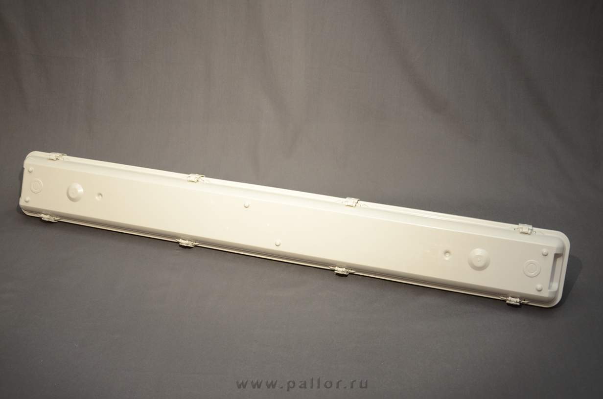 Накладной пылевлагозащищённый светодиодный светильник от компании "Световые Технологии". Замена люминесцентных светильников типа ЛСП. Устанавливается на ровную поверхность потолка или стен, возможно размещение на подвесах (комплект крепления на трос заказывается отдельно).